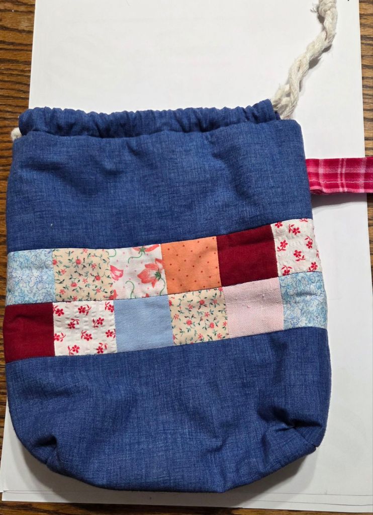 The project bag is also made by me using scrap fabric that I’ve had forever. It’s roomy, squishy, and perfect for this big wrap in progress.