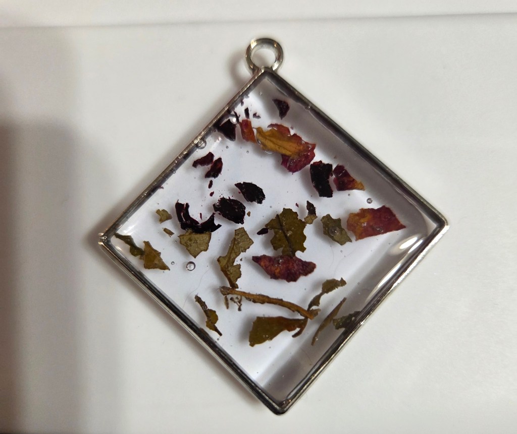 The other piece was a diamond shape, and that’s the one I put the tea in. It had the most bubbles, but it’s still gorgeous. I just wish I’d caught those bubbles earlier, because that one’s a really beautiful pendant.