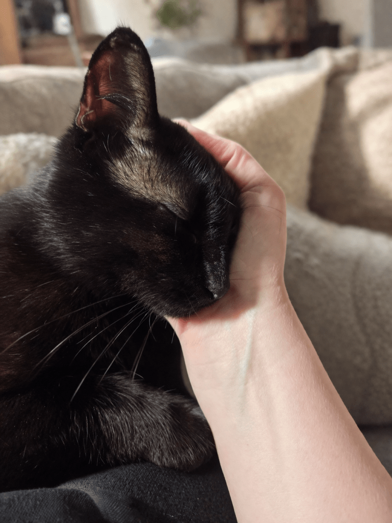 Also, turns out he wasn’t the kitten I thought he was. The shelter estimated he was around five years old — a full-grown adult who just happens to be built like a kitten. He’d been out there surviving on his own, fighting for everything, and carrying scars from a life I’ll never fully know about.