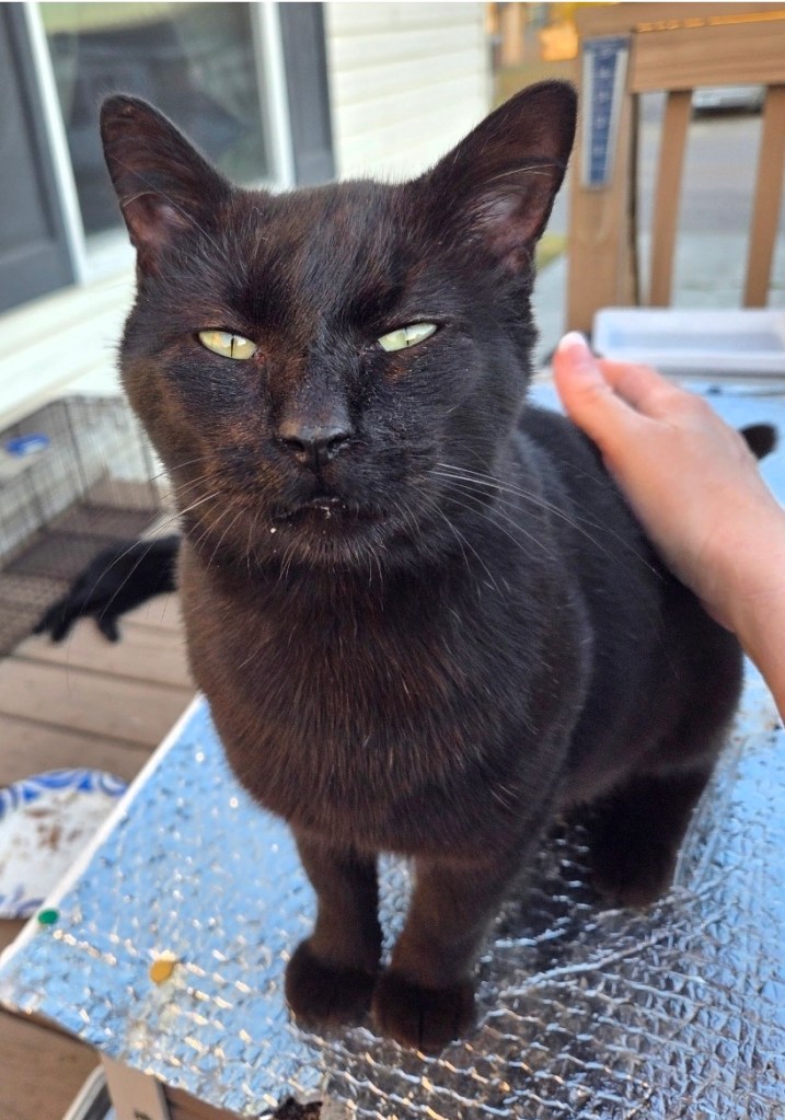 Trapping him was going to be a nightmare. He was one of two cats in the colony that I knew would be nearly impossible to catch. But somehow, by some miracle, we got him. We tried to take him to the shelter first, but they were dealing with an illness in the cat room and couldn’t take anyone new. So we headed to PALS instead — and on the way there, I realized I couldn’t walk in and tell them this cat’s name was Limp. I’d decided a long time ago that all black cats get Z names — so I needed a Z name for him. And that’s how Limp became Zorro.
