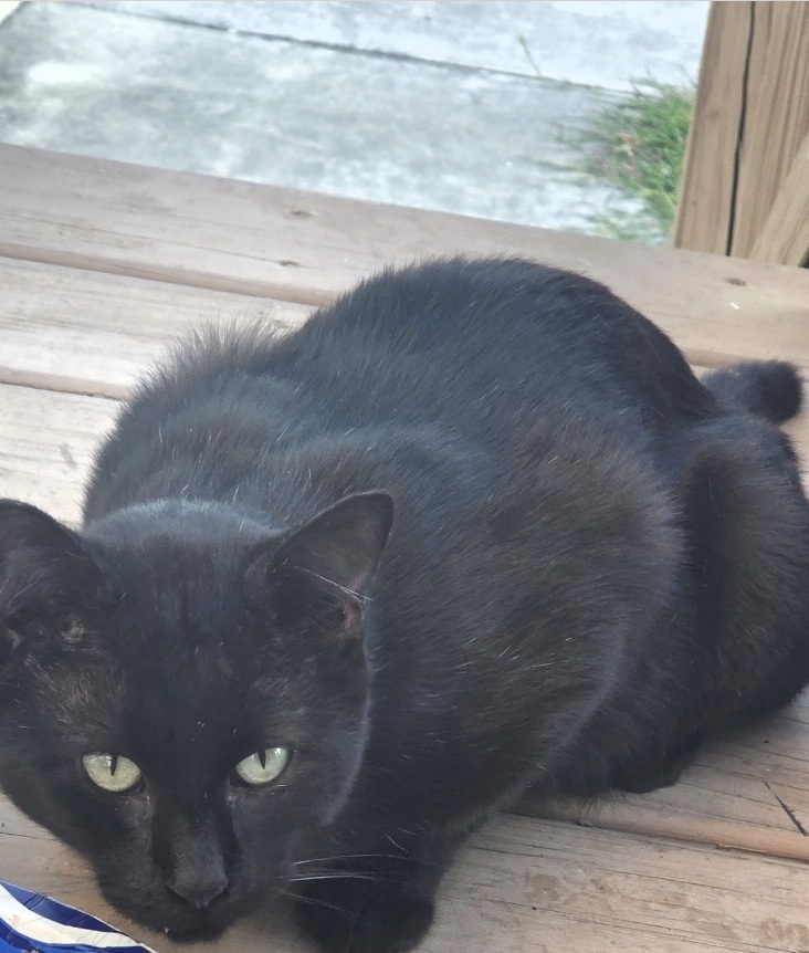 And then one day, he just appeared again. But something was different. He climbed up on top of the cat house next to where I sit on the porch, and he started rubbing against me. Purring. Loving on me. Drooling everywhere. I mean everywhere — drool just pouring out of his mouth. I actually had to ask somebody if he was okay because I had never known a cat to drool like that. This was not the same cat. I started looking forward to seeing him out there. I was falling for him a little, if I’m being honest.